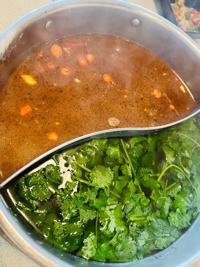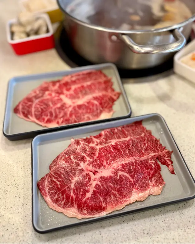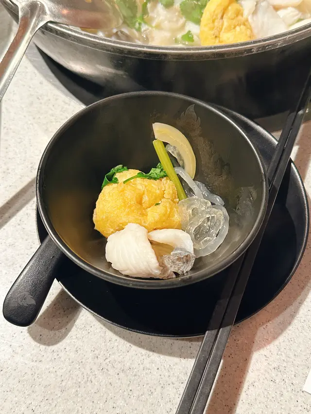 鴛鴦湯底更令人驚喜,我們選了「香茜皮蛋鍋」搭配「懷舊沙爹鍋」,前者清香帶濃郁皮蛋香氣,後者沙爹味厚實微辣,兩種風味讓人一試難忘。