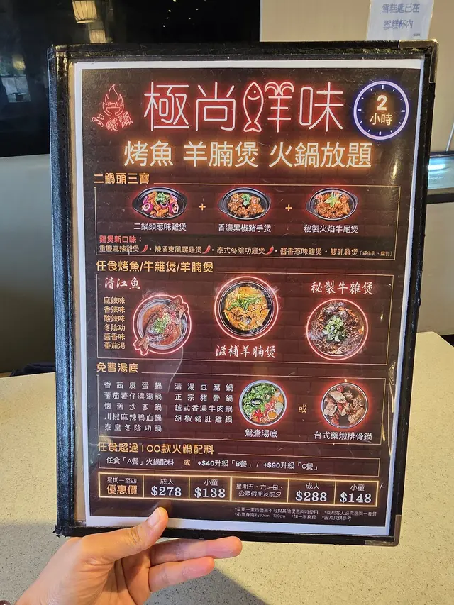 汽水、啤酒任飲,飯後還有雪糕雪條作結尾,滿足感爆棚。餐廳位於沙田好運中心三樓,環境寬敞且乾淨明亮,設有大枱位,非常適合一班朋友聚餐。熱氣瀰漫中,香氣不斷湧上,滿滿的聖誕氣氛熱鬧又溫馨。想趁寒流大啖熱辣辣火鍋,補身又過癮,羊腩煲、牛雜煲、烤魚與雞煲火鍋放題,味道與份量都超滿足!…查看更多