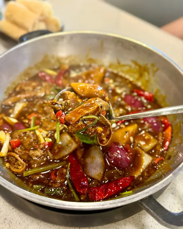 我們當晚用QR Code 自助點餐,率先試了招牌「辣酒東風螺雞煲」,香辣惹味、雞件嫩滑,東風螺吸滿湯汁,每一啖都充滿層次。