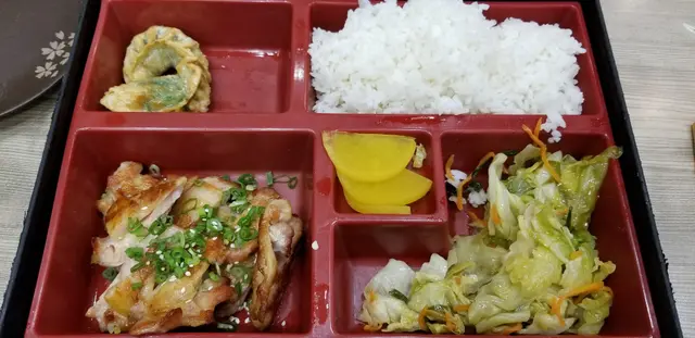 係石硤尾做野經過呢間見幾多學生黎食 所以就諗住試下叫咗 和風牛肉便當上菜速度十分快 因為真係好多學生lunch 時段港式溝日式既飯講真40蚊冇話好大期望牛肉係啲街市肥牛整成 份量多似屋企食到味道 啲菜炒得幾清 冇咩特別調味 有啲黑椒咁中華沙律係平時係魚尚爭鮮買到個啲既質素飯既份量好多 知道自己食唔晒記得叫少飯!玄米茶 平時759買返黎茶包既味道正正常常
