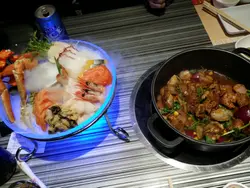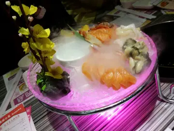 同事lastday, 我地緊係食返餐散水飯夜晚揀左呢間 一個價錢 兩種享受既放題!!又可以食雞煲, 又可以食日本放題...真係大飽口福...佢個刺身盤仲好鬼死靚 有哂led 燈.... 選擇多 真係想食乜 有乜 仲可以拎d刺身去十下十下.. 去邊到搵 係咪sin!?