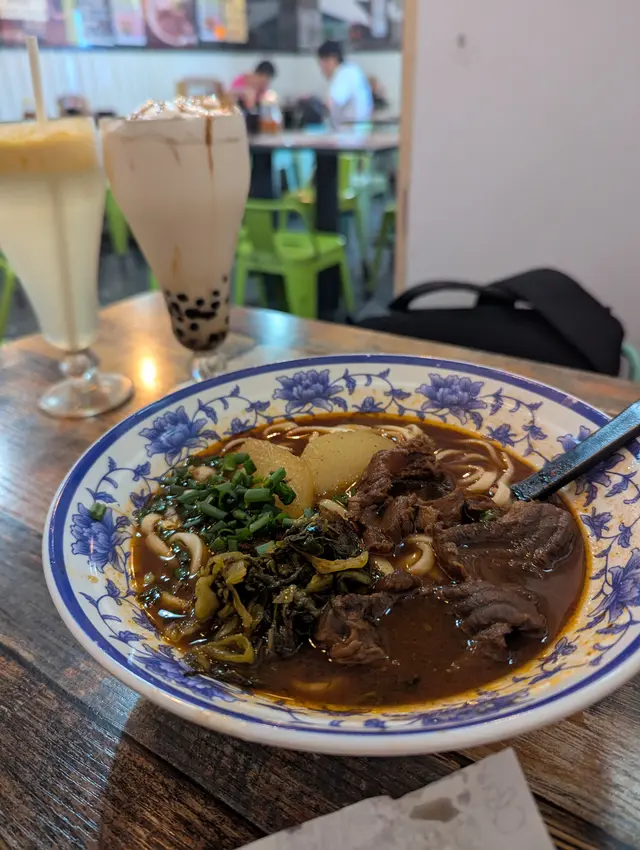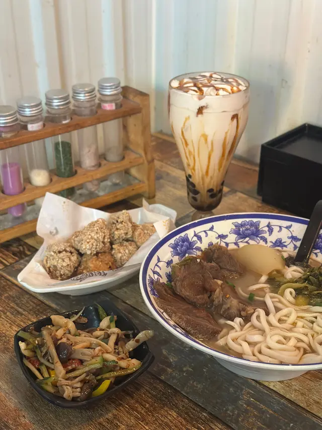 喺觀塘返工嘅友人最近搵咗呢間樓上嘅台式餐廳,佢話呢間嘅味道幾正宗,呢日lunch就嚟試吓🤭花甲鮮蝦粉絲呢個花甲粉有勁多配料🙈 有好多新鮮嘅花甲,真係好鮮甜。另外大蝦都幾彈牙🦐 底下我揀咗粉絲,真係勁索汁,湯底幾惹味,有海鮮嘅鮮味,又帶少少辣🥰紅燒牛肚牛肉麵牛肚同牛肉都幾厚身,牛肉炆得好入味,牛肚都幾軟腍🐮 湯底好濃郁,麵質幾有咬口🍜 份量都幾足,真係幾飽肚。避風塘系列小食餐廳新推出咗避風塘系列小食,宵夜時段過嚟仲可以有半價優惠😮 ♦️避風塘超甜粟米超級惹味,粟米粒粒飽滿🌽♦️避風塘豆腐每件豆腐都好滑,配埋香脆嘅避風塘脆脆,兩種口感相映成趣。♦️避風塘單骨雞翼每枝單骨雞翼都炸得好香脆🐥 夠晒乾身。肉鬆雙重起司蛋餅呢個勁足料,外層幾香口,入面嘅餡料好飽滿,有勁多肉鬆同埋兩種芝士🥰 芝士鹽酥雞有大量芝士淋喺鹽酥雞嘅表面,係個少少邪惡,但令人食唔停口嘅小食🐥 鹽酥雞嘅雞肉都幾嫩滑。飲品午市套餐仲可以用半價加配飲品,台灣特飲或者係新出品都可以有優惠🤑♦️黑糖珍珠奶茶雖然幾多黑糖掛杯,但係味道唔會太甜,而且佢嘅珍珠好彈牙🧋♦️奶蓋生椰拿鐵呢個係餐廳嘅新出品,生椰拿鐵嘅椰子味幾香,同咖啡嘅味道幾平衡,面頭有芝士奶蓋🥥呢間台式餐廳都幾正,見到佢仲有煲仔飯系列都好吸引,等我下次過嚟食吓先 。如果喺呢頭返工嘅朋友一定要嚟試吓 呢間餐廳😎…查看更多