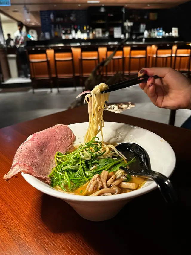 🤔牛肉清湯拉麵 湯:未食就聞到好香嘅牛肉 & 黑松露香味。飲一啖清湯,湯頭非常之清澈,帶有菇嘅香味,清甜得來都夠味又幾香。麵:係一般拉麵常見嘅生麵質地,質地爽彈。材料:掛喺碗邊有一大塊燒牛肉,餐牌寫係來自Lawry 嘅聯乘,但係口感都幾硬實,唔嫩滑,味道又冇特別。普通。味道可以,但係埋單要成$198 ,太貴啦。性價比唔高。:(五行焦香味噌拉麵 $158湯:因為估唔到會係咩味,所以貪得意點咗,食第一啖就後悔。所謂嘅”焦香“原來就係燶咗嘅味道。湯底係醬油味加苦苦哋,有啲燶左黑色粒粒。唔好味囉。麵: 有少少似蕎麥麵嗰種爽身帶硬嘅質地,還可以。材料: 有兩件叉燒,帶點肥肉幾肥美,味道正常。結論係除非你鍾意嗰浸燶燶哋苦苦哋嘅味,否則唔建議。:)豚骨經典拉麵 湯:有濃郁嘅豬骨湯味道,似一蘭嗰種風格。麵:麵條幼細,口感柔軟。材料:叉燒唔算特別嫩滑,味道正常。溏心蛋幾入味。呢個反而係三個之中最好味嘅。前菜::(雞翼雞翼對半切,口感比較多骨。以名古屋雞翼嘅做法,但係太多醬油同沙律醬,導致個皮唔脆,而且口感好甜好多醬料。麻麻。吞拿魚卷 : 正常味道沙律: 正常味道…查看更多