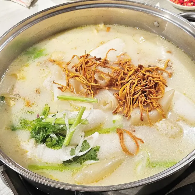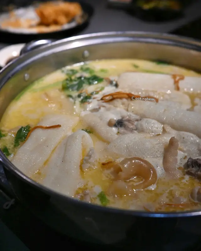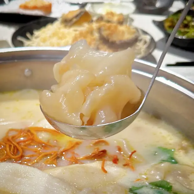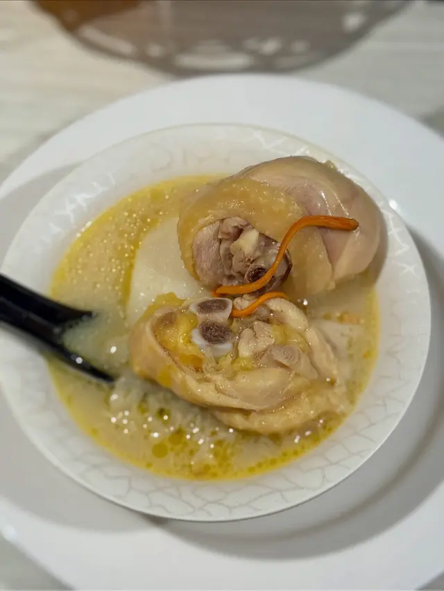 蟲草花野生竹笙花膠湯濃雞煲 主角當然係佢哋招牌嘅「蟲草花野生竹笙花膠湯濃雞煲」🐔。一上枱就香氣四散,湯底乳白,充滿雞香與花膠鮮味。雞肉採用新鮮雞一隻,肉質嫩滑,煮耐都唔會老。湯頭飲落濃郁順喉,帶少少膠質感,非常滋補!
