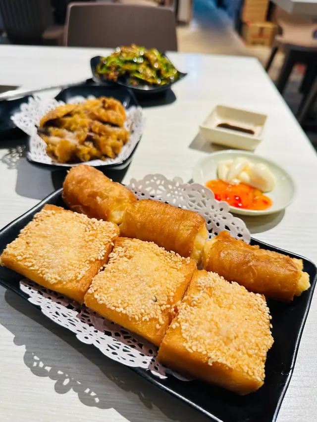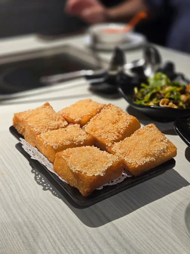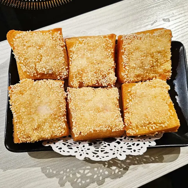 蝦多士 炸得金黃酥脆,蝦膠厚實,配茶最一流。