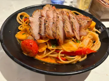 行完黃大仙廟 便去附近既商場 填飽個肚見普遍都係連鎖食肆 見呢間幾特別就試下豬頸肉冬陰公炒意粉Um 坦白講 同餐牌既樣有出入麵下面好多汁 甚至過多 似普通煮意粉 食落亦都無炒過既香味 有啲失望不過配菜幾多 自己因為健康 唔想食得太肥膩幾鐘意有好多三色椒 同車厘茄 洋蔥加上冬陰公 酸酸辣辣 食落唔會溜食得幾辣既會好鐘意豬頸肉 燒過 香口又唔會成口油亦都無臭豬味 幾好食 而且份量亦都多 總結: 如果去黃大仙應該都會再去 餐廳食物選擇簡多 唔貴 味道亦都幾好不過唔至於特登搭車去食…查看更多