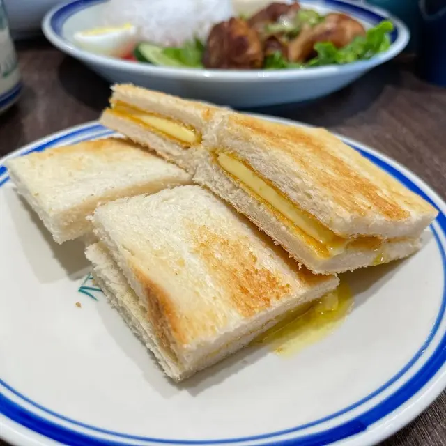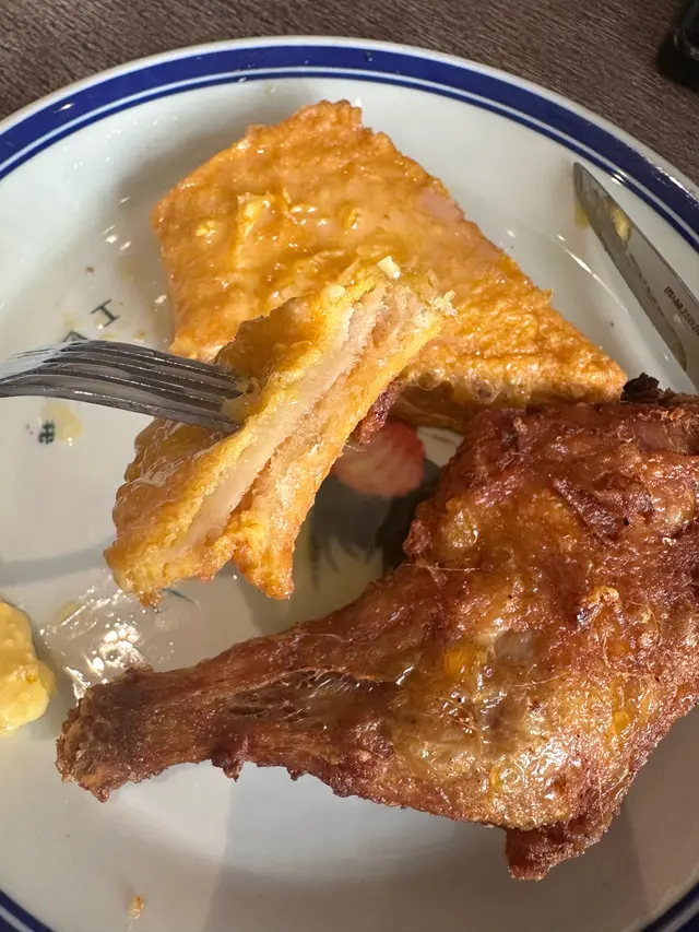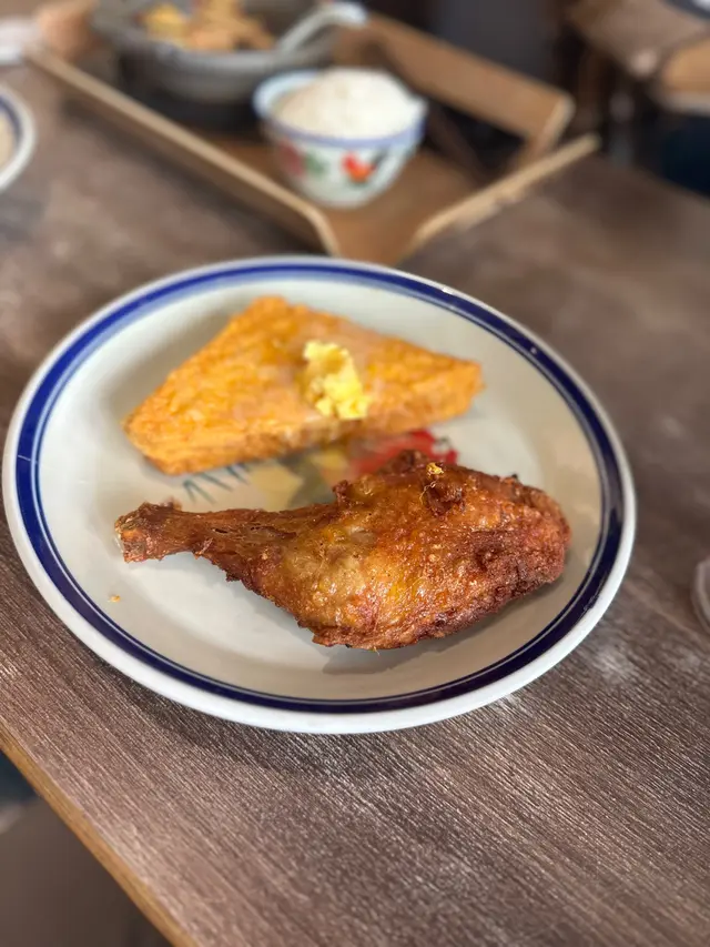 下午茶由2:00pm 開始,有A-M多款茶餐可以揀,由輕食三文治餐 🥪 ,或者飽肚D 嘅粉面飯都有 🍜 🍚,仲包一杯熱飲,凍飲加$3! 📌 炸雞髀配花生醬西多士 (半份) $39🍗 下午茶炸雞髀通常都係配炸薯條,但亞金有得配西多士,一次可以滿足2個願望😍炸雞髀係生炸髀,外皮香脆,入面雞髀肉勁juicy多汁! 西多士炸到金黃色,入面搽滿花生醬,再配埋糖漿同牛油 🍯 🧈雖然邪惡,但真係停唔到口!📌一字骨肉骨茶配白飯 (可選米粉) $48 🥘肉骨茶就比較一般,湯底有D淡,冇咩藥材味,排骨好腍,不過煲得太耐,有D「鞋」😖…查看更多