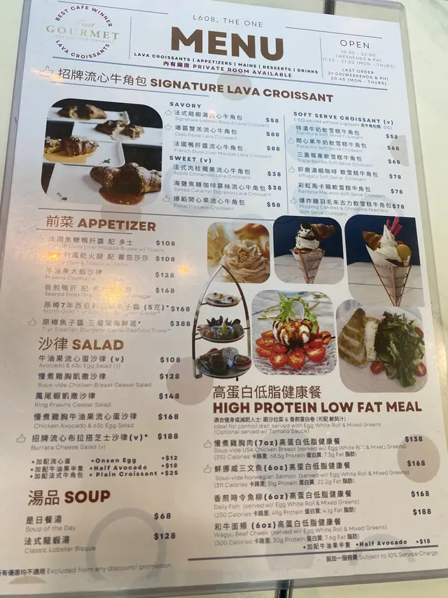 最近有為享慢煮意有優惠。一位$349再原價加一就可以食到90分鐘放題任食海鮮、威靈頓牛柳:1任食招牌龍蝦湯牛角包 /爆漿蟹膏牛角包2.海鮮塔(北海道珍寶帶子配魚子醬/波士頓龍蝦/鑽石蜆/無限追加:鱈場蟹腳/鳳尾蝦/空運活藍青囗3. 招牌酥皮龍蝦湯鍋(無限追加)4. 傳統威靈頓牛柳(無限追加)5. 法式甜品 (無限追加)雖然一開始聽到90分鐘好似會有少少趕,但其實餐廳唔會夠鐘就叫你走。只係90分鐘內可以任叫任食。只要在90分鐘內落單都可以坐喺餐廳慢慢食,所以時間都叫勉強足夠。餐廳位於THE ONE,環境都算唔錯。餐廳裝修同景觀都唔錯。食物方面質素都唔錯。龍蝦湯牛角包同爆漿蟹膏牛角包都好好食。酥皮夠鬆脆,湯又夠暖,真心唔錯。:)我同太太都忍唔住encore 左幾次
