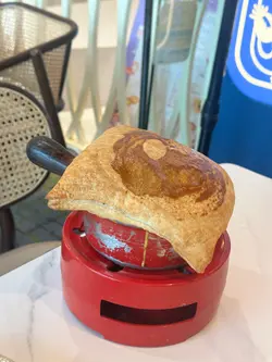一直都有聽過呢間馳名流心牛角包🥐今次朋友請我來食生日大餐😘一次過試左2鹹2甜 4種口味好滿足😆而餐廳裝修風格都幾有情調💕法式海鮮塔+酥皮龍蝦湯五道菜套餐 $596法式三層架海鮮塔 (熱盤)第一層:北海道珍寶帶子配魚子醬:大大粒香煎帶子肉質鮮甜,配魚子醬的鹹香,呢個組合是完美配搭第二層:火焰甲羅燒鮑魚:甲羅燒味道濃郁,鮑魚鮮甜彈牙鳳尾蝦🦐:經調味好的鳳尾蝦爽口彈牙,食落香辣惹味藍青口🦪:4隻味道唔錯的青口第三層:芝士焗龍蝦🦞:半邊龍蝦塗滿芝士焗出來,啖啖肉松葉蟹腳🦀:蟹腳無太多肉,相對地有啲遜色招牌流心牛角包🥐招牌龍蝦湯流心牛角包🦞🥐牛角包焗得好鬆化,一切開裡面龍蝦湯流出來爆醬蟹膏流心牛角包🦀🥐金黃酥脆的牛角包包住滿滿的內餡,蟹膏味道香濃招牌酥皮龍蝦湯火山煲🦞🦐🐟🍲法式龍蝦湯燴海鮮:上菜時附上一支鎚仔,因顧住食海鮮塔的關係,搞到個酥皮塌左😅,燴海鮮有魚🐟,八爪魚🐙,仲有勝瓜,菇菌🍄🟫及蘆筍等配料,龍蝦湯味道濃郁,加入意大利米作泡飯,米飯有咬口,整體層次感豐富,增添風味主菜醬燒松露蜜糖黑毛豬柳🐷黑毛豬柳份量唔多,但燒出來好香,肉質軟腍配埋蘋果醬酸酸甜甜好解膩,沙律菜🥗配黑醋汁好滋味牛肝菌慢煮雞胸配香煎鴨肝🐓🦆慢煮雞胸肉質鮮嫩,後來發現餐廳比漏左香煎鴨肝,用另一隻碟補返,雞胸併鴨肝一齊食都幾香,仲有沙律菜伴碟甜品招牌軟雪糕牛角包🍦🥐好香濃又幼滑的牛奶軟雪糕🍦,牛角包🥐口感更香脆可口,朋友喺OpenRice訂位時註明慶祝生日,就係隻碟寫上生日字句🥳爆餡開心果流心牛角包🥐牛角包外脆內軟,中間夾住大量開心果醬,味道香濃,開心果控唔好錯過🤣白桃芝味特飲🍑🍹表面有一層厚厚芝士奶蓋但唔算好鹹香,不過飲到好濃郁白桃味🍑洋甘菊茶🌼🍵…查看更多