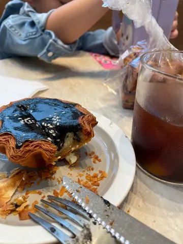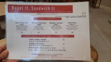 之前知道呢喥有堂食嘅享樂,但上次我同老公嚟到呢頭時,選擇幫趁花班茶社先(食評係2025年9月4日提交嘅呢篇:https://www.openrice.com/zh/hongkong/review/%E7%AC%AC267%E7%AF%87%E9%A6%96%E8%A9%95-y-%E5%91%A2%E7%AF%87%E5%AF%AB%E9%A3%B2%E5%93%81-e6179286),之後都有入嚟睇吓,由於呢間舖唔細,所以呢間嘅麵包種類超多,而堂食除咗有麵包外,都有意粉,咁記住先,有機會就嚟食。到30-9-2025(Tue),同老公繼續放假,就約喺呢頭返工嘅男友人NT,俾手信佢,咁就可以乘機嚟食。我哋嚟到時都只有一個堂食客人,首先坐低,然後睇menu,決定要:4. $43.00嘅梔子花綠茶我想要熱嘅但冇,咁照要啦。睇見都幾多冰,味道清新舒服,唔錯,但真係太多冰,所以好快淡晒。建議如果客人問有冇熱,就算照俾凍,都可以靈活地減少啲冰甚至走冰。4分3. $42.00嘅熱焙茶latte睇唔出個拉花係咩嚟,飲落唔熱,而味道好平衡。5分1. $68.00嘅大蝦酪梨貝果三文治呢個算幾快到,貝果烘到外脆內煙韌,個醬充滿香草味,而酪梨即係牛油果,其他食材嘅口感同味道都正常。5分2. $108.00,每日限定嘅本店主角,法式貝果呢個等好耐至到,用鐵板上,表面有焦糖,切落去,同樣係外脆內煙韌,開頭食到有蛋汁嘅貝果時,口感軟綿似蛋糕但當然冇咁鬆軟,味道都唔錯,但食到入面就只係麵包,我至知道呢個其實係麵包,感覺唔同咗,變得冇咁好食。不過個貝果一直都keep住熱,然後食凍雪糕,感覺係唔錯。3.5分環境:都好闊落舒適。價錢:定價有啲太高。…查看更多