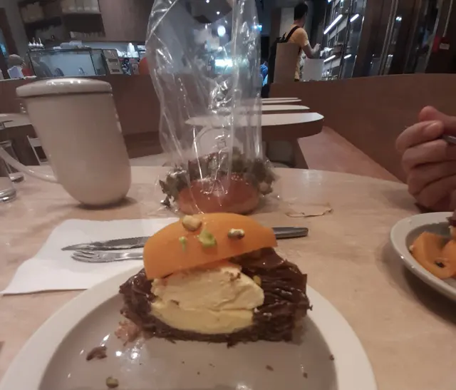 左: 熱姑媽伯爵茶, 中: 抹茶椰子水(凍)少冰, 右: 松露菌雞肉腸包