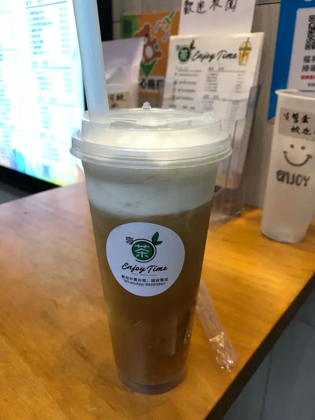 炎夏需要廢水,而新蒲崗 享茶 的 芝士奶蓋烏龍茶,絕對是一杯稱職的消暑良品。奶蓋厚身且口感幼滑,帶有恰到好處的鹹香。烏龍茶底茶香濃郁而不苦澀,與奶蓋的鹹甜平衡得宜,帶來豐富層次,清爽無比,瞬間透心涼。To cater the need for a perfect refreshment, Enjoy Tea delivers with their Cheese Milk Foam Oolong Tea. The cheese foam is thick and silky smooth, with just the right touch of savory goodness. The oolong tea base is rich without any bitterness, balancing with the foam‘s sweet and salty notes, giving you an instant cool-down for beating the heat.…查看更多