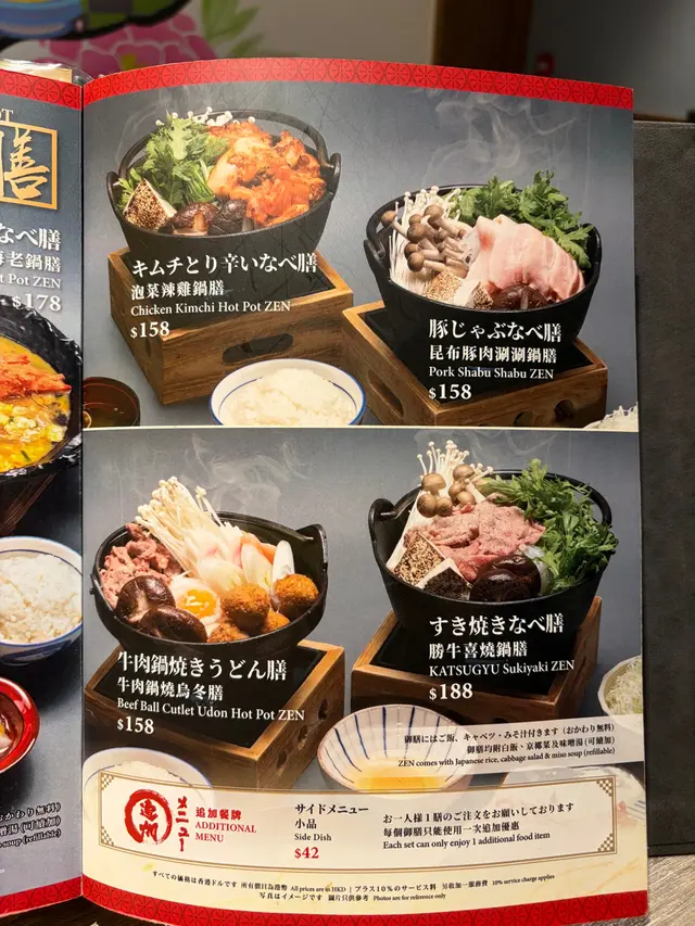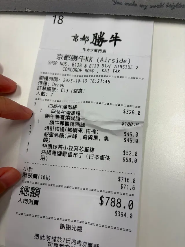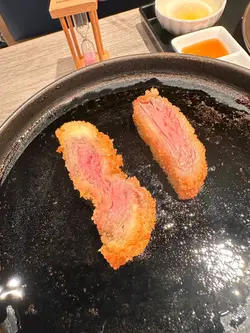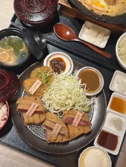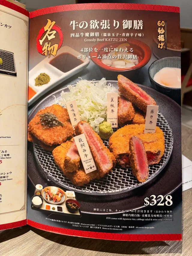 今日中秋節,老公話兩口子出去做節食飯。佢話要打破傳統,唔食中菜,要食日本菜。餐廳係日本過江龍,裝修充滿京都風情,坐位寬闊,坐得好舒服。餐牌選擇有好多,老公發辦叫左個御膳同鍋膳,另外飲品同甜品各兩款。四品牛魔御膳:有翼板牛、菲力牛、穀飼西冷、同醬味薄牛共4款,上枱時職員會用心講解。吉烈牛大約3至5成熟,枱面已附上煎pan同用牛脂起鍋,食之前煎一煎嫩紅色果面,如果用吉烈果面煎就會唔脆。煎完後可點醬汁食,醬汁選擇亦好多。各款牛外層做左吉烈,咬落輕脆juicy,我就覺得生椒最好食,鹹鹹地帶出牛嘅原味道。呢個御膳仲有酸蘿蔔、椰菜、麵豉湯同白飯,其中椰菜、麵豉湯同白飯仲可以無限添加,真係夠晒大滿足。勝牛喜燒鍋膳:鍋裡面有滑滑豆腐、本菇、冬菇、日式粉絲同白菜等。喜燒牛肉油脂豐富,各款材料掛汁,湯底濃味但又唔會過鹹。鍋膳配上酸蘿蔔、麵豉湯同白飯,白飯同樣係可以添加,整個鍋膳其實都幾豐富。特濃抹茶小豆流心蛋糕:流心蛋糕口感軟棉,抹茶味道濃厚,粒粒紅豆甜甜地,旁邊仲有個雲呢拿雪糕球,好食又鐘意。沖繩黑糖雞蛋布丁:口感較實正,好有雞蛋味,焦糖香氣獨特帶甘甜味道,入口好有層次感。果物冰茶:冰茶有白桃、菠蘿同椰果,底部果物多,果味濃,微甜,生果配上紅茶味道夾,幾好。椰子抹茶紅豆冰:椰子同抹茶味同樣香,紅豆淋甜,整體夠冰凍唔太甜,唔錯。#京都勝牛 #GyukatsuKyotoKatsugyu #CafeDecoGroup #現炸60秒的美味 #日本吉列牛肉專門店 #gyukatsu #kyoto #katsugyu #AIRSIDE #香港日本菜 #九龍城 #九龍城日本菜 #香港美食 #香港探店 #香港旅游攻略…查看更多