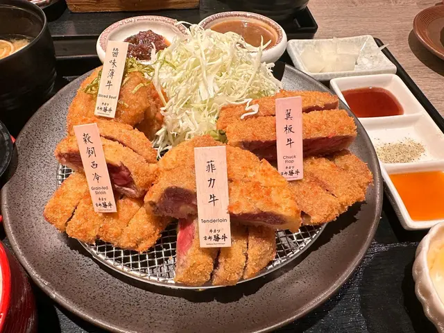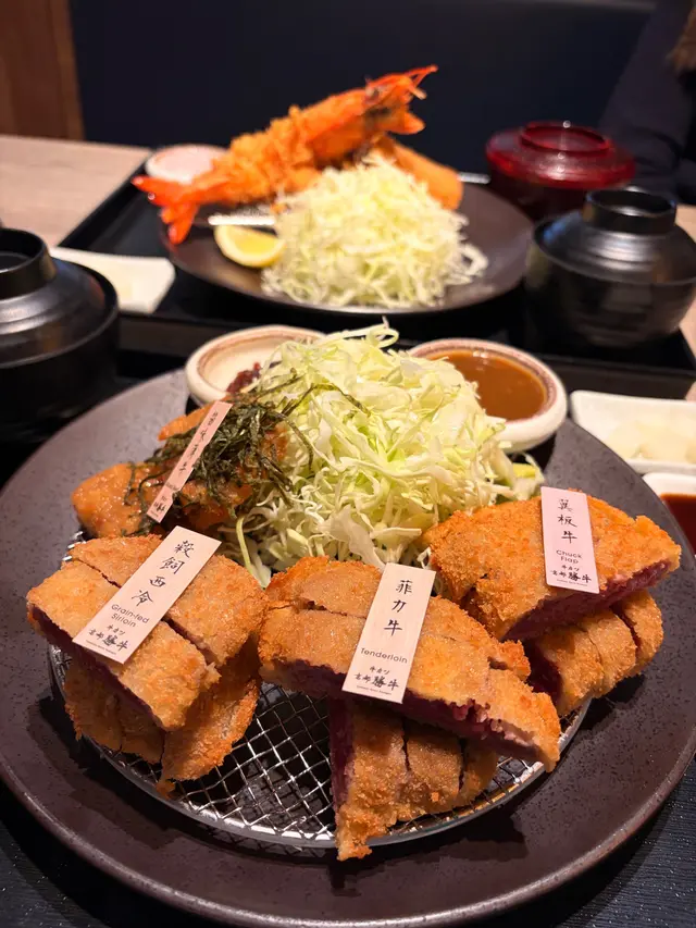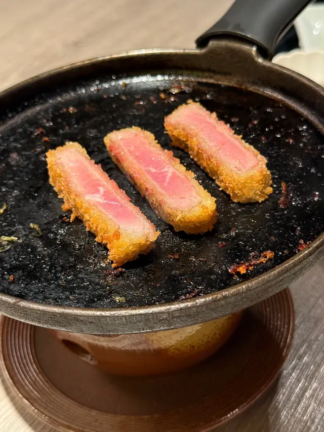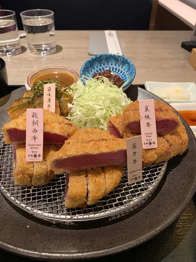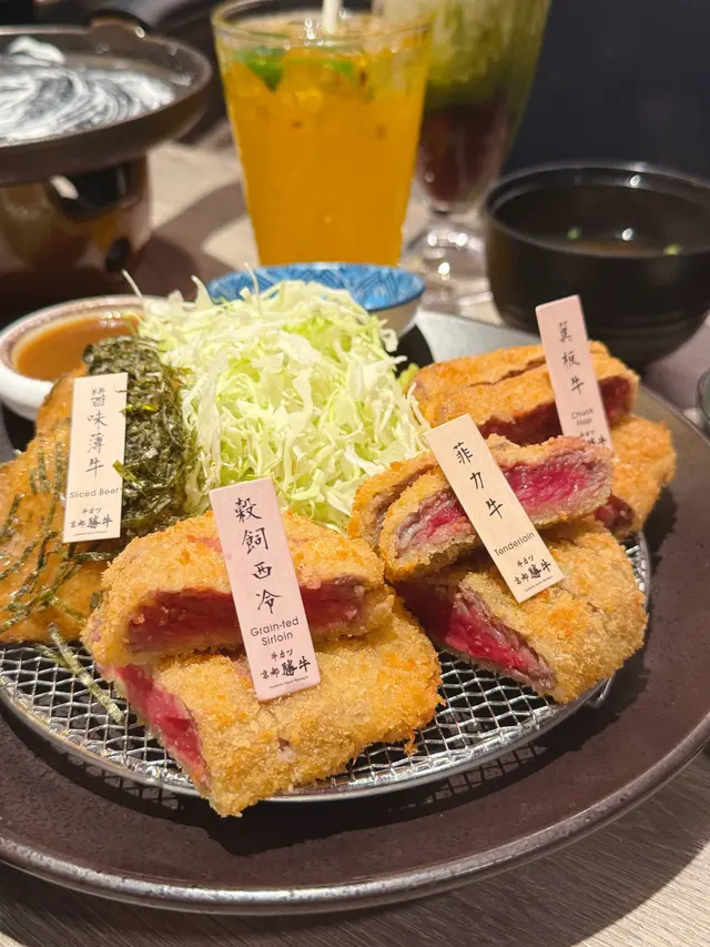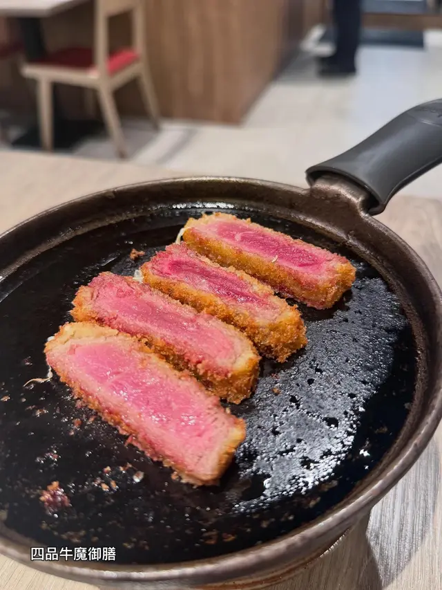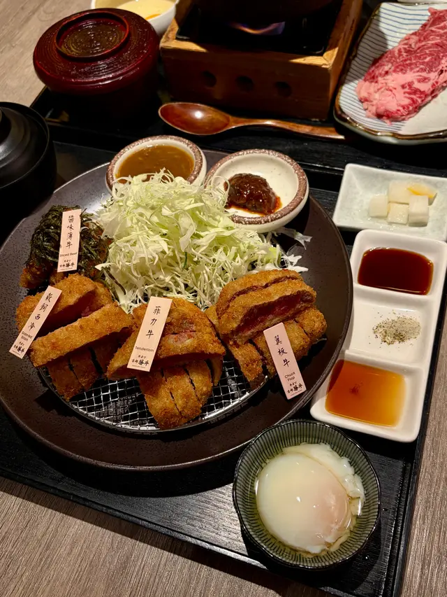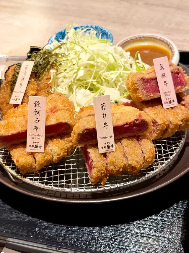 上菜時店員仲會俾個小煎pan 🔥,可以 自己控制熟度。外層麵包糠香脆但唔厚重,輕輕煎到啱啱半熟、外脆內嫩,肉汁鎖得幾好,配埋沾醬同蛋汁,牛味即刻再提升一級🤤 四款牛之中,我嘅最愛係菲力牛,厚切但一啖咬落去超嫩滑,又帶返陣濃牛香,啱晒鍾意Juicy口感嘅人