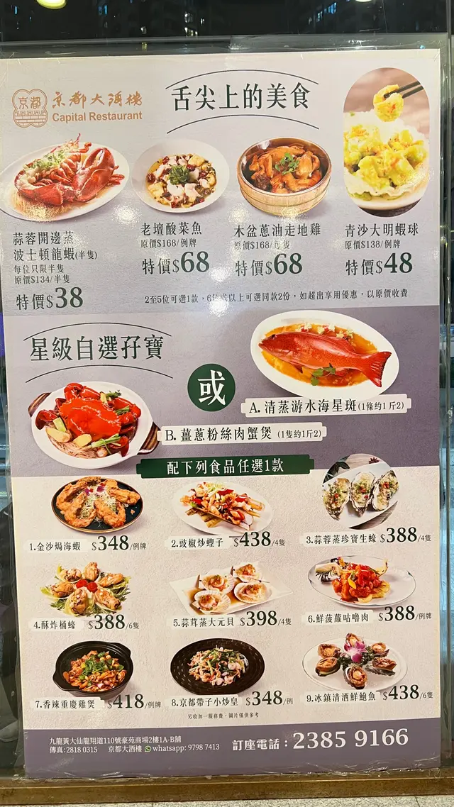京都大酒樓 (黃大仙) 網址: https://s.openrice.com/QrbS0WEG900 地址: 香港黃大仙龍翔道110號豪苑商場2樓1A-B號舖 電話: +852 23859166