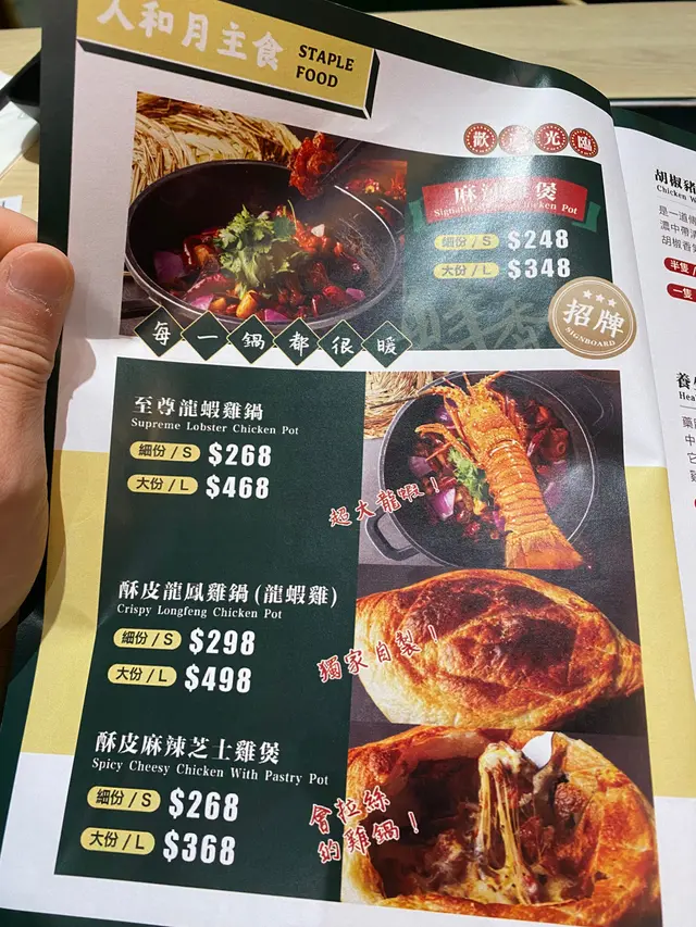 返完一日工,食返餐好嘅慰勞下自己,係必須嘅!今日約朋友放工去尖沙咀食晚飯,事關係網上見到個酥皮雞煲非常吸引😍我哋三個人就去咗呢間餐廳食,環境舒適,位置好坐、闊落👍🏻 啱晒收工之後鬆一鬆!我哋個個做咗大胃王,食咗超多嘢🤤超滿足每人比多$20 ,就可以試埋店家提供嘅惹味醬料及餐前小食。正!雖然有餐前小食,不過由於實在太肚餓了,我哋仲叫多咗兩個小食:·香酥肉 $28.00味道都幾得意,酸酸地又有點麻的感覺,好特別!不妨一試!·南國糍粑 $28.00一食就不自覺「嗯~」咗一聲,堅好食!紅糖漿配黃豆粉真係好夾,糍粑口感煙韌👍🏻👍🏻一定要試🌟終於到主角出場:酥皮龍鳳鍋 (BB辣) $298.00個酥皮一出場,不!得!了!是金黃色的😍烤焗得勁靚!不停打卡!店員哥哥幫手切開之後,裏面就非常多料,呢個龍鳳鍋係又有雞又有啖啖肉嘅龍蝦🦞如果唔想食龍蝦,都有淨雞煲選擇的👍🏻食完雞煲唔夠喉嘅話仲可以再打埋個邊爐,個人覺得性價比高的可以試吓以下呢幾款:·和牛三寶(後腰、上前、極黑板腱)$388.00·至尊牛三拼(本地牛、牛小排、和牛)$368.00·海陸空拼盤(肥牛/黑豚肉、雞件、廣島蠔丶虎蝦)$198.00查看更多