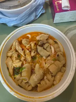 今天去了旺角附近做事,所以在附近找了一家買外賣回去公司吃,我去了很久沒有去的人和。這一家一直都是我的口袋名單。點了一碗一直很喜歡的油渣麵,油渣非常的大塊又多、很香,另外再加了一些大腸,他們家的大腸特別的好吃又多、軟軟嫩嫩,還有再加一些辣椒,我想他們應該是把這個湯頭燉了很久用一些內臟燉所以那個湯特別的好喝,然後這個麵裡面還會有一些蘿蔔絲,跟本身的湯非常的搭,我還買了他一碗豆腐花還是那麼的滑,吃完是一個滿足。查看更多