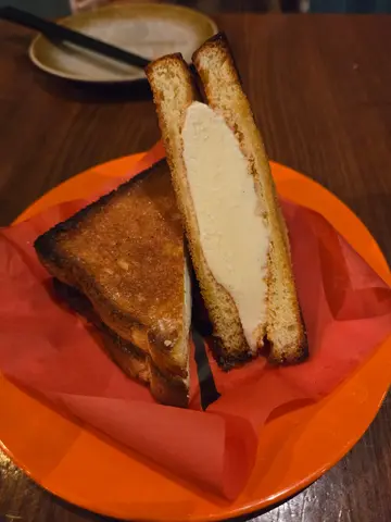 中環也可以吃到性價比高的串燒!低至10元起的串燒,而且沒有將貨就價,難怪晚上那麼多人吃了,還有啤酒優惠,真的挺不錯。鹽燒西班牙五花腩(10元/串)雖然10元,但五花腩也是厚切的,肉汁豐富,有油香,帶一點點的辣。泰式墨魚鬚(10元/串)沾了醬汁,就真的是濃濃泰式風味,酸辣香甜,口感爽滑。鹽燒雞腿肉(20元/串)賣相真的很好,特別是雞皮燒得焦焦的,肉還是吃起來非常嫩滑多汁。雞軟骨(20元/串)雞軟骨質素比平常的要高,燒得剛剛好,吃起來又帶點肉汁,口感爽脆。汁燒雞爽肉(20元/串)口感彈牙,有雞肉香。免治雞肉棒(28元/串)雞肉棒裡還有點雞軟骨來增加口感,沾上香滑濃香的蛋汁,口感更滑,味道更香。鹽燒牛舌芯(28元/串)簡單加上黑椒來調味,牛舌肉嫩多汁,牛味濃香。蒜蓉欖角燒蟶子(38元)蟶子大大隻,入口非常鮮甜,調味濃香,有蒜香又有欖角的鹹香。鹽燒和牛牛小排(48元/串)牛小排肉汁非常豐富,肉質柔軟,有油香忌廉煮蜆(68元)西式的煮法,但用的是新鮮大蜆,味道非常鮮甜多汁,醬汁奶滑。墨魚滑紫菜大蝦(68元)份量真的挺足的,大蝦大大隻,再用墨魚滑和紫菜包裹著去炸香,口感更爽滑,味道更濃香,配上明太子醬汁,更惹味,更鮮。九肚魚(68元)炸得表面非常酥脆,內裡肉質超嫩,配上甜辣醬,更解膩。燒元貝(48元)煮法改了成西式,醬汁是菠菜忌廉汁配上煎到7—8成熟左右的帆立貝,口感鮮嫩。還配有烘得香脆的多士。焦糖雪糕三文治(48元)非常邪惡的一個三文治,表面有焦糖的焦香,內裡是香滑冰凍的雲呢拿雪糕,一冷一熱的,很香甜。可樂(16元)…查看更多