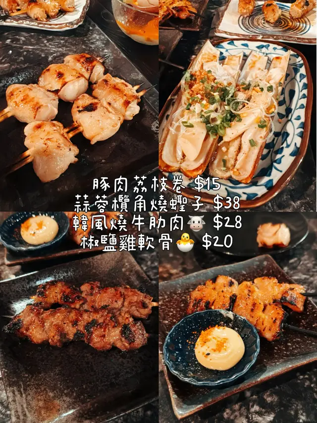 人生有限杯·串燒店🍡飲啤酒SAPPORO 🍻都買一送一💕好吸引🤩有多款式揀👍🏽我自己就飲手打檸檬茶🍹清涼解膩一流🍢🐷🐷🐷肉類💫香辣牛舌💫豚肉牛油果卷 🐷🥑焦香豚肉包住creamy牛油果解膩又美味😋🐔🐔🐔雞類💫鹽燒雞腿肉 🍗💫鹽燒鮮雞腎💫椒鹽雞軟骨💫惹味雞腳筋🦵💫免治雞肉卷 雞腿肉外脆內嫩,鹽味適中,雞腎鮮嫩多汁😳椒鹽雞軟骨酥脆口感好香口,雞腳筋彈牙不同燒烤不同風味💕🦞🦞🦞海鮮類💫墨魚滑大蝦🍤 💫泰式燒墨魚鬚🦑墨魚鬚彈牙好味,加埋特製泰式醬汁好好味😋🥬🥬🥬蔬菜類💫香燒翠玉瓜🥒💫秋葵卷燒烤後香料滿滿仲有好多汁,口感軟滑,清新又好食🤤💫銀杏💫日式淮山 清淡得來口感爽脆健康之選🫰🏾😬💫蘋果鵝肝多士🥪 超級推介🌟🌟🌟以想不到的好味道👅蘋果清爽甜美加上厚切鵝肝出奇地夾,多士脆卜卜,口感層次豐富🫶🏽…查看更多