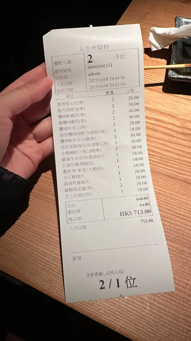 「人生有限杯」喺一間人氣高、性價比極高嘅串燒店,店內有成50多款串燒選擇,價錢低至$10串,即叫即燒,絕對新鮮。佢有各款嶄新、獨特串燒,真係食到返尋味😋。今次同朋友大點勁點,真係食到好鬼飽,而且款款串燒都於水準之上,以下係小女私心推介:👍🏻👍🏻黑松露燒雞肝:雞肝燒到剛剛好 質地滑嫩 入口即化;黑松露香味濃郁 令味道更昇華👍🏻👍🏻鹽燒雞腿肉:雞皮燒到焦脆 肉質仍保持鮮嫩 簡單調味已經好好食👍🏻👍🏻韓風燒牛肋肉:韓風醃料令牛肋肉很惹味 肉質柔軟外微脆 帶有微微甜味🔸鹽燒豬肋肉 / 豚肉牛油果卷 / 鹽燒和牛牛小排👍🏻👍🏻蟹粉日式豆腐:脆嫩豆腐 配濃郁蟹粉櫻花蝦醬 勁邪惡配搭 👍🏻👍🏻山椒鰻魚汁燒白鱔:白鱔皮好脆口 鱔肉多汁彈牙 味道少少辣 少少麻 好好食👍🏻👍🏻墨魚滑紫菜大蝦 :紫菜裡包了爽口彈牙墨魚滑及大蝦 外層炸到好酥脆 味道極鮮👍🏻👍🏻蒜蓉菜脯燒元貝:元貝很鮮甜 熟度剛好 加上滿滿蒜香 大愛👍🏻👍🏻芫荽雞絲手抓餅:酥脆手抓餅 放了好多芫荽及雞絲 味道好夾 芫荽控一定要試 🔸日式淮山(配世一蛋黃醬)另外,除了Sapporo生啤買一送一外,仲有清酒、果酒、cocktail 及無酒精飲品,配串燒全都係一個好選擇!…查看更多