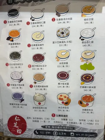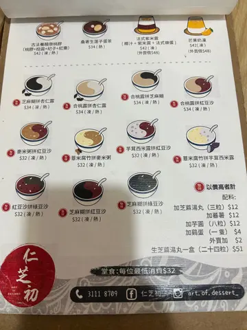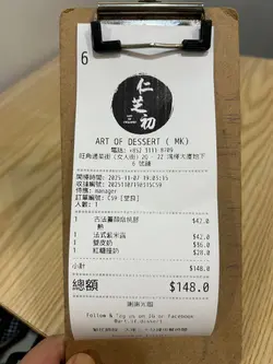 🎀旺角。經典港式甜品 五週年擇骰仔遊戲🎲🎀🪄店名* #仁芝初 🔮地址* 旺角通菜街2Q-2Z號鴻輝大廈地下6號舖 🔮🗾分店地區🗾 沒有分店💰價錢$ 已加一 (2人)➖➖➖➖➖➖➖➖➖➖➖➖➖想睇更多同區推介👉地區搜尋🔍🗾#pickyme_旺角剩系食呢一類👉食物類型搜尋🔍🍜#pickyme_甜品➖➖➖➖➖➖➖➖➖➖➖➖➖🎵餐廳環境🎵這間位於旺角小巷內的糖水店,是不少旺角年輕人必食的宵夜港式糖水店。店鋪空間寬敞明亮,設計簡單但別有心思。店舖提供免費包場應援設計計畫,每月都會變身“港中日韓台泰明星應援店”😙😙最近還舉行五週年優惠,消費滿$50可以玩擲骰仔遊戲贏取配料或現金卷折扣,有興趣可以一試!🍽️食物質素🍽️餐廳主打傳統中式糖水,由90後店主拜師學藝,堅持用傳統古法每日新鮮製作。糖水價錢親民,大多在$30-$40左右,而且用料十足,誠意滿滿。👀評分💖💖💖💖🪄紅糖撞奶 $28店舖全新甜品要試試!裡面配搭很特別 有鮮芒果粒 醇滑椰奶 及Q彈紅糖凍,口感滑溜又有層次,味道出奇地平衡。👀評分💖💖💖💖🪄紫薯芋蓉蓮子西米露$35🪄原個雪梨燉川貝$51紫薯芋蓉蓮子西米露的芋頭味道濃郁,紫薯天然嘅紫色好靚,食落綿密滿足,西米露增添咗口感,整體味道同賣相都值得一讚。原個雪梨相當足料,甜品很滋潤,加入名貴川貝母及冰糖慢火細燉,很適合乾燥秋冬食用,潤肺又養顏~(5個💖為最高)✴️✴️✴️✴️✴️✴️✴️✴️✴️✴️✴️✴️✴️⚜️整體評級⚜️🎈味道評分*😋😋😋😋🎈環境質素*🎇🎇🎇🎇🎈抵食程度*💰💰💰💰💰🎈服務態度*💌💌💌💌💌…查看更多