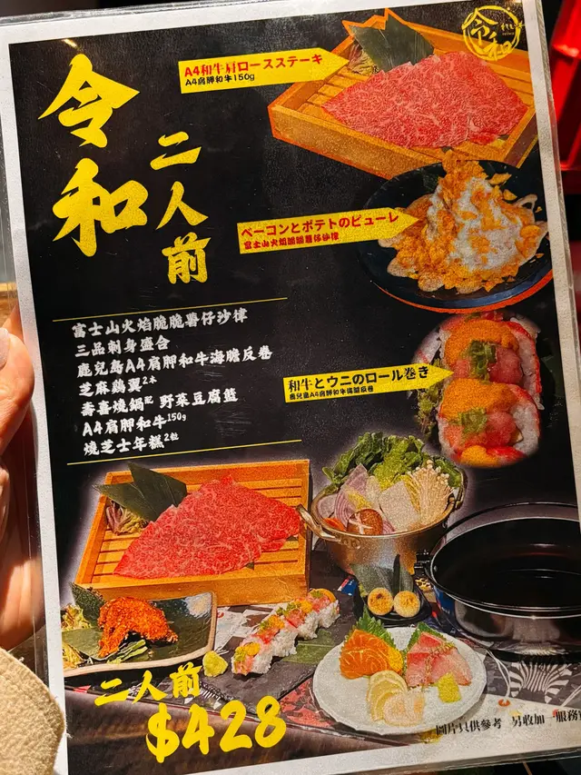 今晚去了人氣居酒屋🏮享受二人晚餐,氣氛輕鬆寫意。餐廳環境裝潢充滿日本風情,特別喜歡那些趣致的燈籠🏮。我們點了A4和牛肩甲肉套餐,牛肉肉質嫩滑,油花分佈均勻,入口即溶的口感令人難忘!和牛海膽壽司🍣更是鮮甜美味,海膽新鮮,兩者簡直是絕配。最後以壽喜燒作結, 湯底濃郁,配上各款新鮮蔬菜🥬和菇🍄富士山薯蓉配薯片沙律口感脆卜卜加薯蓉既嫩滑咬口,芝士年糕甜而不膩,飲品揀左巨峰提子soda酸甜開胃,另一杯蜜桃soda都好好飲,非常滿足! …查看更多