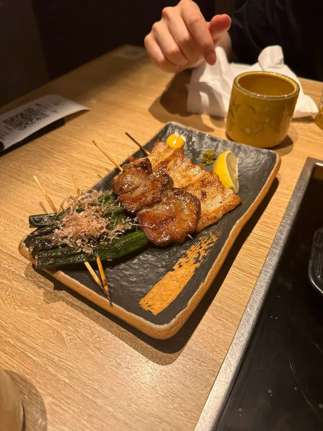 塩燒牛舌 柚子鹽黒豚肉串 汁燒秋葵