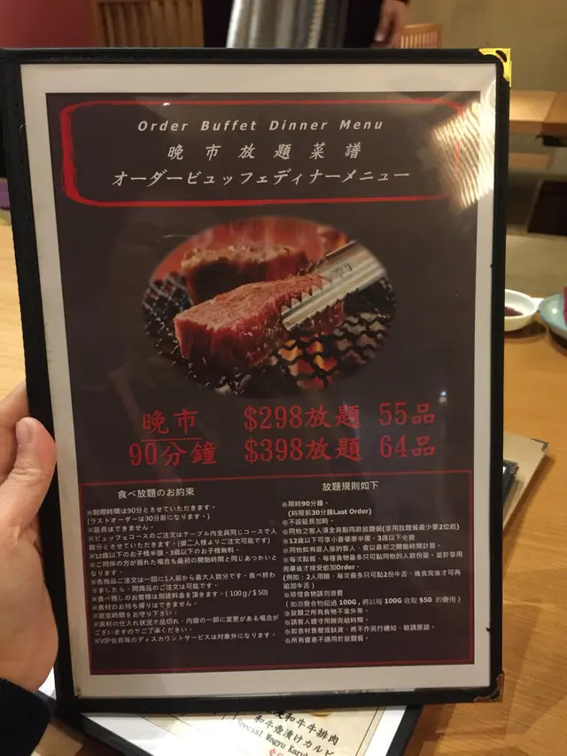 服務態度都唔太好,每次都揮左手好耐先叫到staff嚟都等左好耐時間,而佢哋嚟到之後好似等多一等都唔得,好急要離開,但係成間餐廳都只有幾枱客人,未睇到佢哋要忙既地方。而Staff係一到時間完就趕你走,呢樣真係令人覺得唔好算。總括嚟講,燒肉既話呢個價錢應該可以搵到更多好食同有更好服務態度既餐廳。