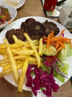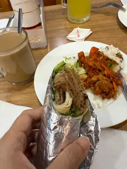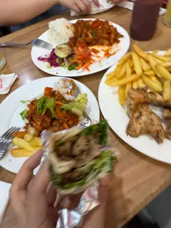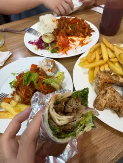 以前去過土耳其旅行,見灣仔道有間土耳其餐廳,每次經過都好想試🇹🇷今次中午終於決心去食,午餐都有多達20款選擇!轉燒雞肉卡巴卷 $79裡面有大量生菜和雞肉、加上沙律醬,捲餅皮比較淋身🫓整體感覺比較健康但夠飽腹,不過唔太感覺到土耳其特色雜錦轉燒烤肉配薯條 $99食肉獸之選!雜錦烤肉有牛肉和雞肉,兩款都一啲都唔韌,加入黑椒和香料等調味會比較濃味;側邊還有炸薯條和沙律,非常大份!整體而言,午餐價錢在灣仔而言適中,還有配汽水/土耳其茶。覺得肉類午餐比起卡巴卷抵食,大家來可以一試呢度嘅烤肉菜式,支持小店💪🏻