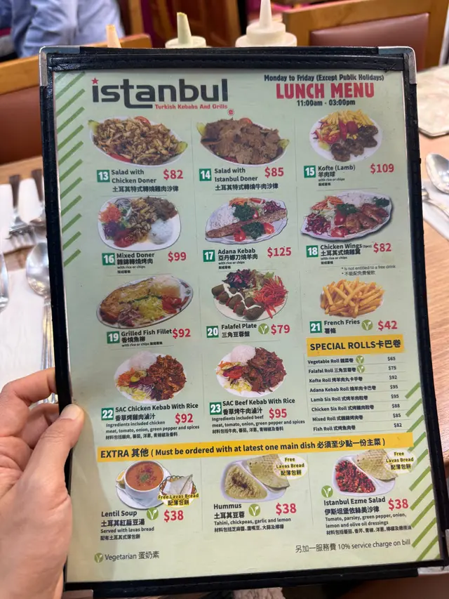 稍高的價格享受Istanbul美食。這裡有很多土耳其餐廳也以“Istanbul”命名。 他們都屬於同一家公司嗎? 偶爾路過這家店。 驚喜! 一位外國女士正在熱情為顧客服務。微笑著歡迎我。也許Wan Chai 是遊客的地標,而且外國男性顧客很多,所以他們的老闆找了一位外國女士歡迎顧客。 她很開朗。 我點了他們的套餐烤羊肉配Salad、薯條、土耳其茶…… 食物的味道很好。強烈推薦:土耳其招牌菜—烤羊肉。 這是他們的土耳其非常有名和實力的菜餚,你不會失望的! 濃郁的烤香料味和軟嫩的羊肉,不僅融化在嘴裡,也融化在心裡。套餐組合可選擇薯片或米飯.脆脆的厚薯條和甜甜的土耳其茶,他們的salad有額外的烤青椒Grilled green pepper和Grilld Tomato😘,而其他店則沒有。 說實話,如果和類似的餐廳相比,菜品飲料與其他類似店非常相似。但他們的價格有點高。取決於你對餐廳最期望的是什麼? 如果您正在尋找一家有Taste的餐廳或熱情的迎賓餐廳,漂亮的土耳其裝飾, 民族音樂和土耳其顧客的對話,充滿土耳其風情, 您也可以考慮這裡!