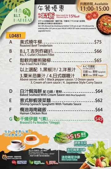 B.L.T. Habitat (休點)提供早午茶三餐,為B.L.T.品牌旗下餐廳之一。
