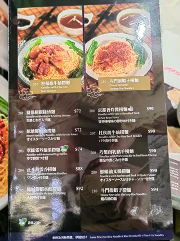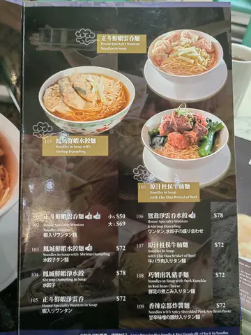 餐廳招牌菜為粥、粉、麵,其中招牌雲吞麵除了味道好外,同時滲透著老香港的風味。