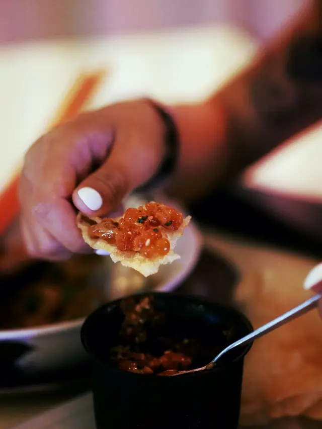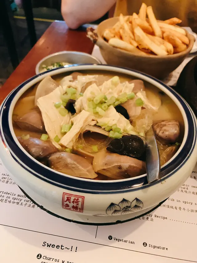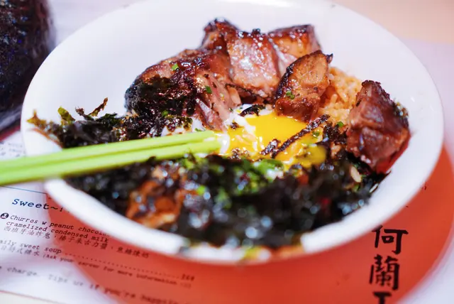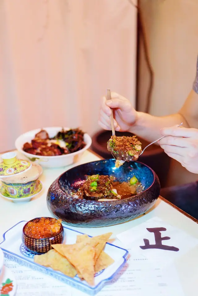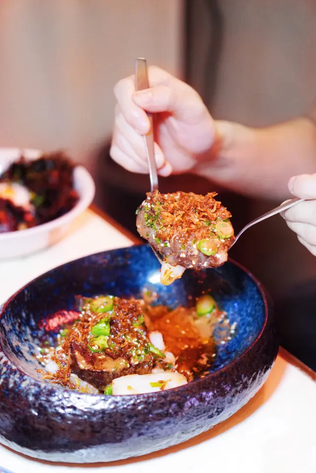 入到何蘭正,一眼望去,🤩立刻被啲菜色光彩吸引。慢煮伊比利亞叉燒配九州溫泉蛋,佢個蛋黃一𠻹,啲汁流晒落飯上,真係順滑得嚟富有層次,叉燒肥瘦適中,咬落去肉香四溢,微微嘅蜜糖味同炭香撞埋一齊,真系讓人夠哂嘴福。香煎虎蝦球個香味就真係撲鼻嚟𠵱家,九層塔加咗個清新提味,不過話咁快就要做完美工程,虎蝦球入口時嘅Q彈,就略顯微妙,蝦味唔夠突出,但呢個時候,花雕日本蟹味噌就上場啦,係舌尖上打轉嘅umami味,令普通嘅扁意粉都變得出色。至於甜品,成人紅豆冰加咗酒精,飲落去就算酒味唔重,但都夠晒震撼,要話形容,就係嘆為觀止!再嚟個黃金朱古力奶昔,朱古力味夠正宗,同埋唔會太甜,飲得多杯都唔覺膩。最後,個芝麻花生湯丸,充滿傳統同創新碰撞嘅味道,玩味十足,食完整餐,覺得自己食過一個香港與世界嘅小小旅程。😌🥢🌎…查看更多
