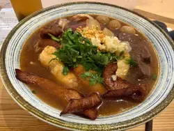 這次在中午放飯的時間第二次來這家車仔麵真的很值得來吃。走進何車車仔麵,這次我點了一份自選麵搭配——蕎麥麵、豬紅、西蘭花、陳皮魚蛋,並佐以獨家調製的日式冷麵汁,為傳統港式車仔麵帶來新鮮的日式風味。入口鮮嫩多汁,帶有微妙的豬血香氣,與麵條完美融合,增添層次感。則保持脆嫩,帶來清新口感,平衡了油脂的濃郁。則是點睛之筆,魚蛋的Q彈配上陳皮的微苦香氣,展現出獨特的層次。搭配的則是整體的亮點。這款冷麵汁清爽不失濃郁,帶有淡淡的醋香,完美中和了豬紅與魚蛋的油脂,讓整體口感更加清新開胃。冷麵汁的微酸微甜,為整份車仔麵添加了一抹日式風情,令人一試難忘。整體而言,這份車仔麵不僅延續了傳統的港式風味,更融入了日式元素,帶來令人驚喜的味覺體驗。麵條彈牙,配料豐富,冷麵汁的加入更是畫龍點睛,值得一…查看更多