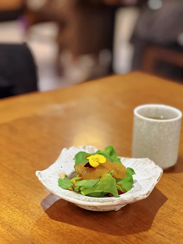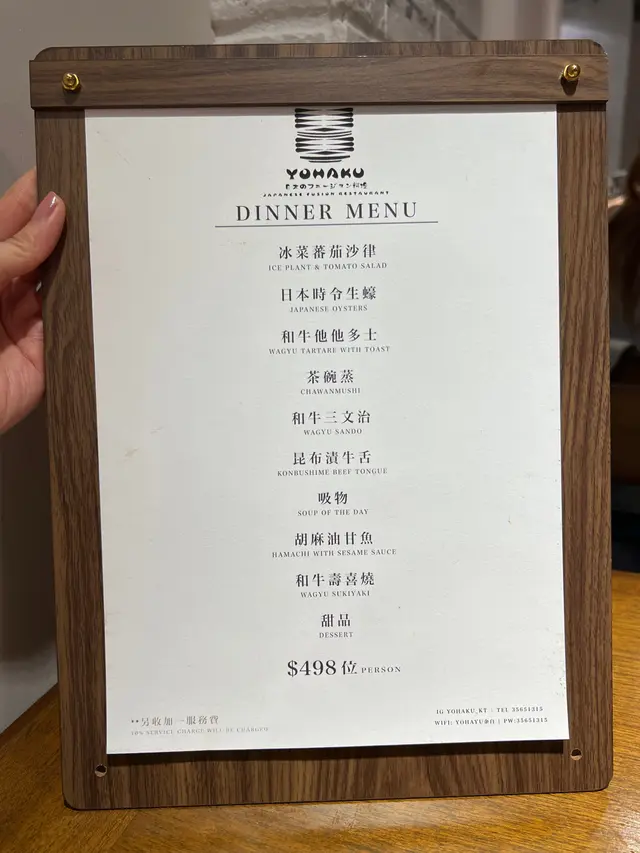 位於觀塘工廈嘅🌟余白🌟,係一家🆕剛開業不久日式料理店🎋,無論環境、服務以及食物均優質👍🏻,新張期間仲有8折優惠🎉!,🎋晚市套餐 $498/位 🎉11月試業期間 $398.4/位由頭盤到甜品一共10道菜,當中包括3道和牛料理及兩道刺身,定價合理!🥗冰菜蕃茄沙律爽脆嘅冰菜,配搭爆汁嘅蕃茄,加埋自家製嘅柚子酸汁,微酸清新又開胃!🦪日本時令生蠔來自兵庫縣嘅室津生蠔,蠔身肥美,水潤甘甜,唔錯!🥩和牛他他多士由店員操作拌勻,和牛他他mix咗蛋黃之後,更軟滑Juicy,而和牛嘅肉甜味亦更見突出!♨️茶碗蒸內含三文魚籽、蟹肉、海膽等新鮮材料,為滑溜嘅蒸蛋供應源源不絕嘅鮮味!🥪和牛三文治香脆嘅多士,夾住吉列和牛,口感外脆內軟!伴帶有意式風彩嘅和牛肉醬,增添風味!👅昆布漬牛舌14小時慢煮嘅牛舌,上菜前開煎香,入口先香後軟嫩,配搭鹽漬昆布提升旨味,真係好正!漬物為自家製柚子大根,清新口腔!♨️吸物鮟鱅魚肝綿滑而且鮮味十足,亦為湯品帶來油香!🐟胡麻油甘魚以新鮮芝麻磨製而成嘅胡麻醬,比市售嘅更輕盈,只帶香味,的確幾好!油甘魚刺身配搭大葉絲同埋生洋蔥絲,都掩埋唔到魚肉嘅魚甜味!🔥和牛壽喜燒熱鍋上菜,肉品質素十分好,油花夠晒均勻!壽喜燒為關東風,最近天氣轉掠就啱晒!🍮甜品伯爵茶焦糖雞蛋布甸 - 帶一絲絲伯爵茶香,布甸微甜蛋香足,口感又夠滑!豆乳雪糕 - 冰涼帶豆香,連同下層嘅餅脆輕輕炙燒過,增加層次!…查看更多