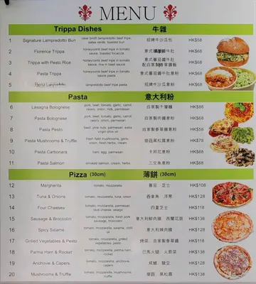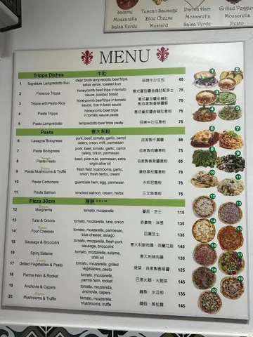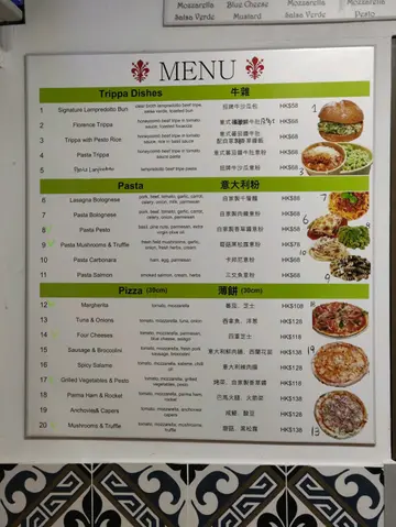 位處堅道住宅區為主,距離行人電梯區域一街口之隔,但氛圍淡靜得多。主打佛羅倫斯牛肚包。 據聞係當地嘅街頭食物,而為咗令出品保持原來神髓,店主堅持用返當地食材製作。烘香左嘅麵包,包含住滿滿嘅牛肚。牛肚煮得好淋,淡淡既調味恰到好處,既保留到牛肚原味,又唔會有一陣難聞既內臟味。店員會問你要唔要辣,記住一定要。個汁其實唔係咁辣,但係有滿滿嘅香草味,令到整個包嘅味道升華。牛肚包之外,用咗蕃茄同香草煮嘅金錢肚都值得推介。