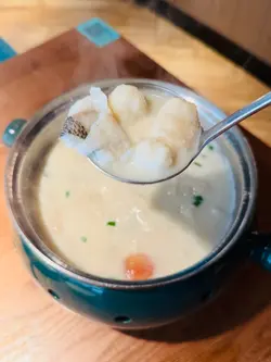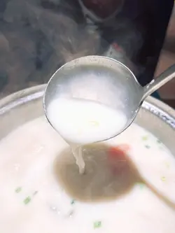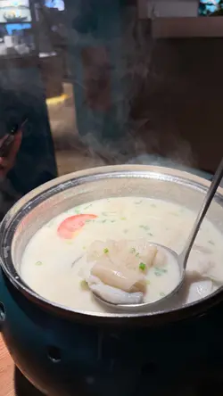入邊有蠟燭興住成個魚頭鍋,令到啲辣椒油唔會凝固左。魚要趁熱食,食魚要小心食,都有好多小魚刺,點一點鍋裏嘅辣椒油,真係好惹味,連阿豬媽都食到都冒晒汗!