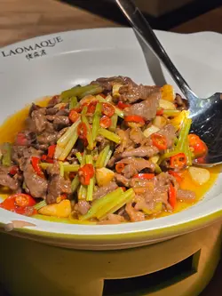 小炒黃牛係家鄉小菜名物,加入了指天椒🌶️、芹菜🎋同蒜頭🧄,兜兩兜炒熟牛肉,食得,送飯一流。