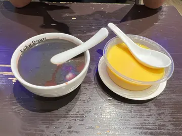 冰花燉雞蛋 / 冰糖燉木瓜 / 芝麻糊 / 寧波薑汁湯丸 / 濃薑番薯糖水