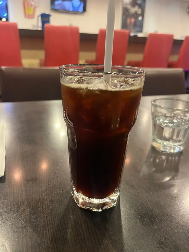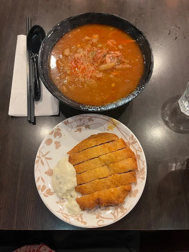 吉列豬扒配羅宋湯通粉,另加半條司華力腸,凍咖啡走甜