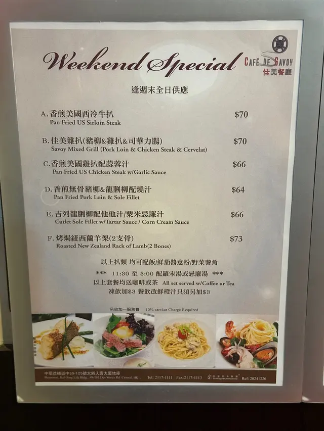 佳美餐廳 (中環) 網址: https://s.openrice.com/QrbS0Upi000 地址: 香港中環德輔道中99-105號大新人壽大廈地庫 電話: +852 21171111