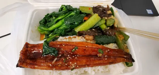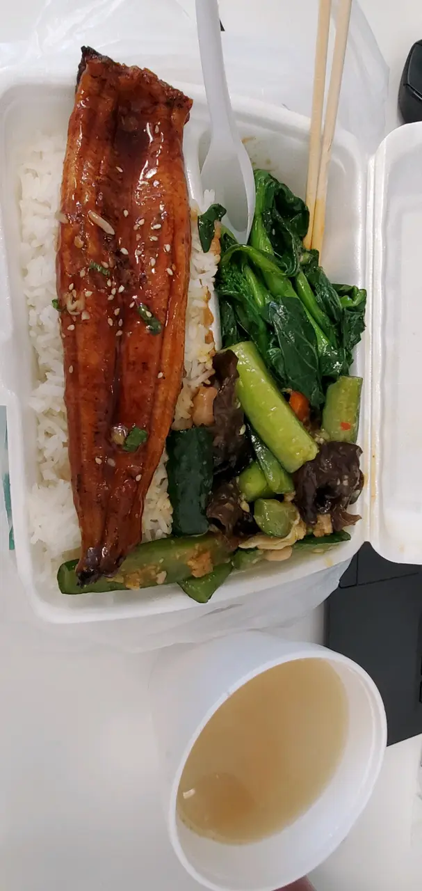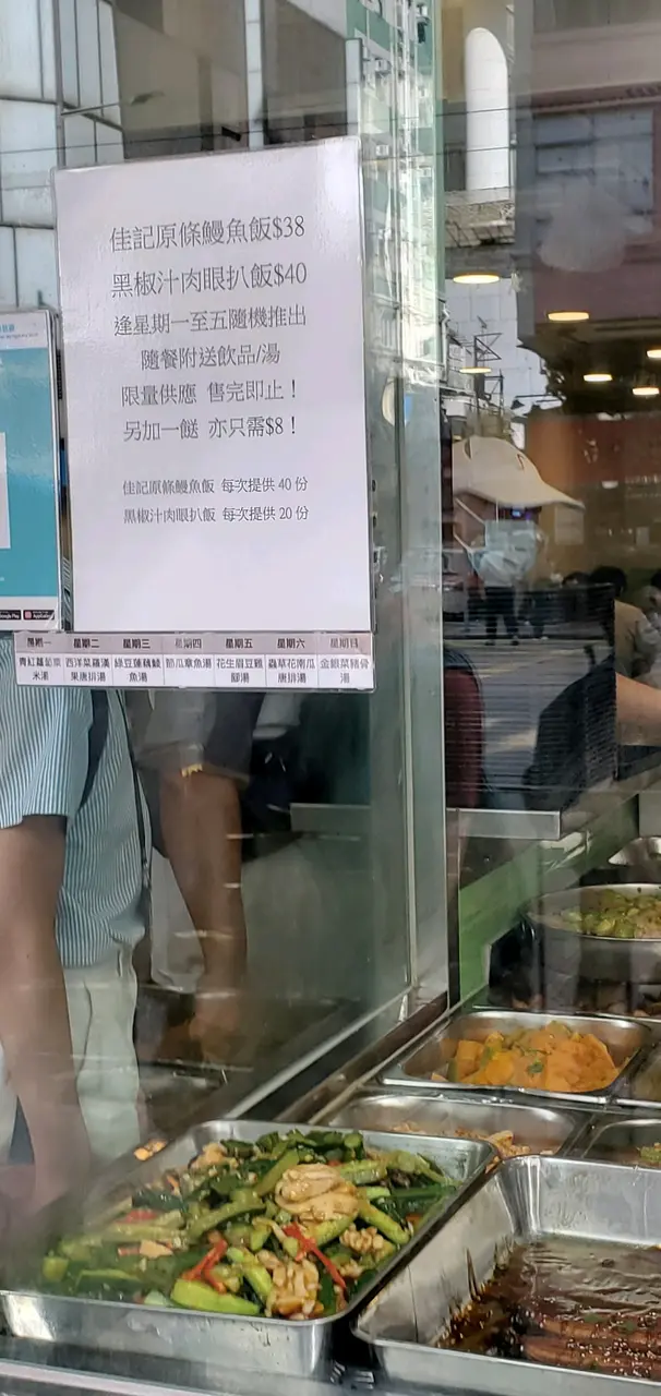今日去佳記見到有期間限定饅魚飯,眼見得返3條,於是揀咗38蚊饅魚飯,另外加咗8蚊要青瓜炒肉片。原來價值38蚊既饅魚飯本身已跟咗份菜心同飲品,唔洗加錢要多個餸都有菜食,變咗我用46蚊買咗三個餸。返到公司打開個飯,饅魚應該係細size,鰻魚都有飯盒既長度,味道正常,仲有一大堆炒菜心,好好味,青瓜炒肉片爽脆可口,每次都必點,呢次既飯好抵,38蚊真係抵到爛,但12月好似無咗饅魚飯,呢次係我唯一一次食到佳記饅魚查看更多