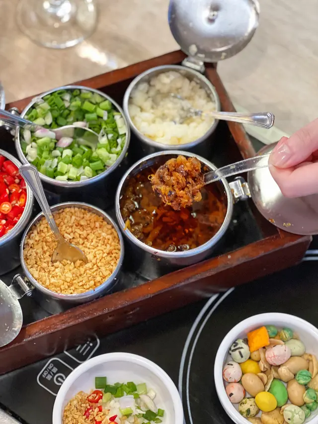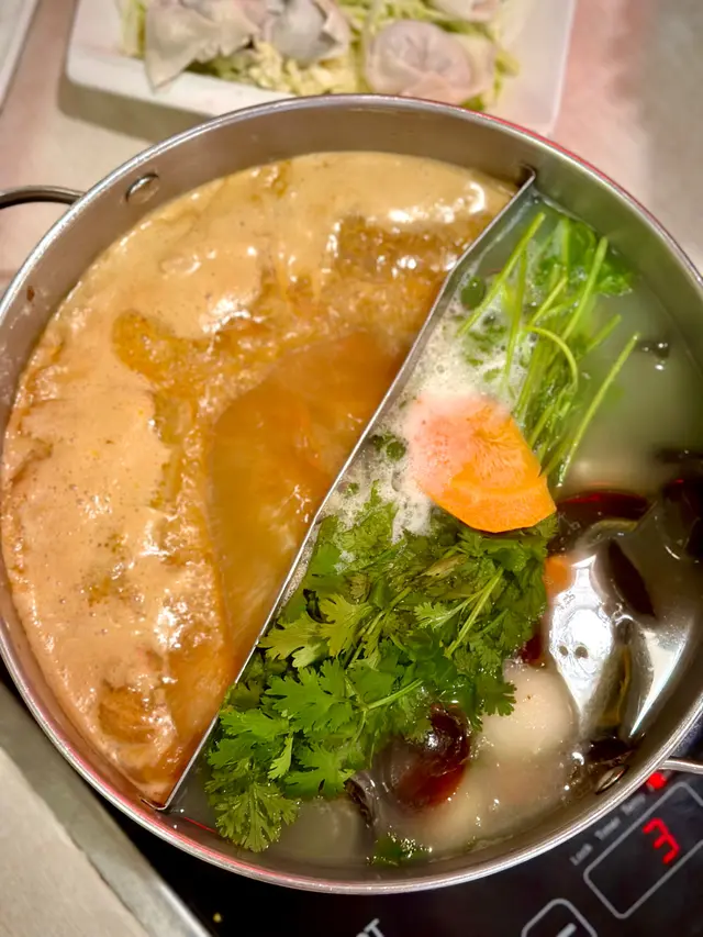 天氣越嚟越熱,但打邊爐對香港人嚟講係無分季節嘅!大角咀呢間港式火鍋,早午市食點心,夜晚搖身一變,火鍋時段有新鮮即劏刺身例如象拔蚌,游水龍蝦等,最啱約埋三五知己一齊嚟😆—————🍲湯底 - 鴛鴦湯鍋 ( $78 )可以揀香茜皮蛋拼沙嗲/清湯拼沙嗲,沙嗲湯底都幾濃,有滿滿嘅花生粒,本身入面仲有啲豬皮索晒湯底添!-今次人少少,就嗌咗以下幾款配料本地招牌手切肥牛 ( 例$228 )份量十足!肥瘦均勻,手切比機切口感更佳,而且塊塊都有番咁上下厚度🤓特選桂花蚌 ( $108 )爽脆彈牙夠鮮甜!竹簽海蝦 ( $62 )海蝦大大隻夠新鮮,上枱都仲郁郁吓🤣肉質爽口彈牙,用竹簽食夠方便!潮式三寶丸 ( $55 )白魚蛋、魚片頭同黑椒牛根丸,三款都大大粒又彈牙,牛丸夠紮實😋查看更多