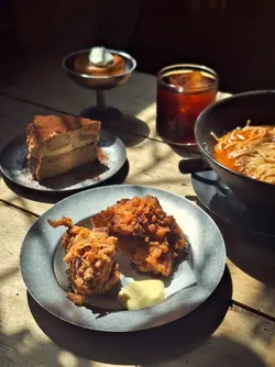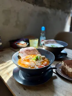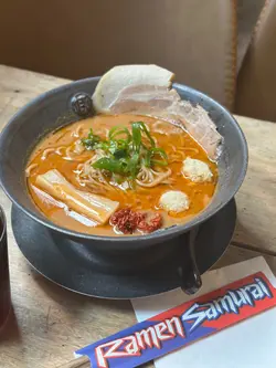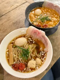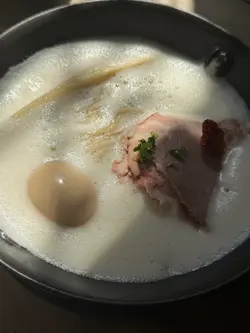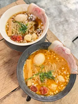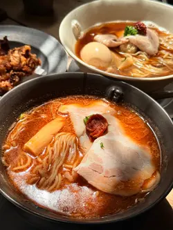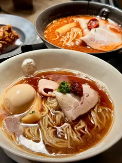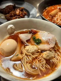 今次來到太子呢間新開嘅型格拉麵店x咖啡店!餐廳有用特色湯底煮成嘅自家創新拉麵~每碗拉麵都附有特色配料,有彈牙嘅雞肉丸子、軟嫩嘅慢煮北海道黑豚梅肉、大蔥絲、青蔥、風乾蕃茄同埋爽口嘅雞油烤茭白荀~✨熟成雞煮干醬油拉麵呢碗麵最特別嘅就係呢個醬油湯底,可以按照個人口味去選擇湯底同埋風味油!今次就叫咗雞同煮干1:1比例嘅,味道充滿層次感~✨熟成雞白湯拉麵超濃厚嘅雞白湯,表層仲有一層薄薄嘅泡沫,入口質地好順滑!自家製嘅麵條麵質很彈牙,而且掛汁能力高~✨Samurai 炸雞外層炸到好香脆,內裡嘅雞肉保持住豐富嘅肉汁!好有水準~✨焦糖布甸幼滑得來又帶有濃郁嘅蛋香味!底部有一層薄薄嘅海綿蛋糕!配搭焦糖,仲有表面忌廉做點綴,整體甜而不膩~✨芝麻巴斯克蛋糕巴斯克蛋糕口感比較紮實!芝麻味濃厚,味道帶有餘韻~✨Cold Brew Coffee用咗冷萃嘅方式去製成,減少咗咖啡嘅苦澀感,味道更輕盈,更容易入口~✨冷泡八女煎茶八女煎茶嘅茶香好獨特,帶有花香同草香,清涼又解渴~…查看更多