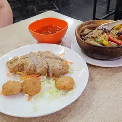 咁岩經過黃大仙, 竟然比我發現個邊有間齋鋪, 位置都有少少隱蔽, 大概只有附近街坊先會知道。除左單點都有唔少套餐, 二人至八人不等, 價錢都非常優惠 😊 本身朋友同我都想叫西檸千層, 但最後冇得叫所以就唯有叫第二款。一個黑椒茄子煲, 一個五柳仙斑, 煲仔個款熱辣辣, 上碟後都仲係滾住個煲, 雖然幾乎無黑椒味, 但依然好惹味, 而且朋友仲因為咁先反而覺得更好食 😃 仙斑外面脆炸, 裡面既芋頭都好粉糯, 雖然有兩款, 但味道都係一樣既, 配埋甜酸醬就岩岩好 ☺️ 大概係餐廳老闆, 佢好好人咁送左碗粉葛湯比我地試, 味道甜美。…查看更多