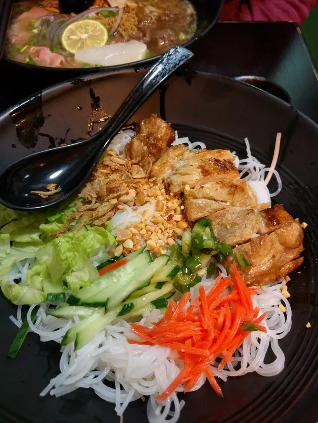 有幾次要黎呢條界限街搭車, 留意到車站隔離呢間越南菜小店好耐今次就決定搭車前試一試佢咁細間小店, 估唔到都有幾多野食價錢經濟合理, 同朋友每人叫左碗粉麵傲月火車頭, 牛既部位乜都有D, 生牛肉牛肚牛筋牛腩等, 啱哂食肉獸湯底雖然不算濃, 但都幾清甜, 飲埋湯起碼唔會勁口渴仲有淋甜既白蘿蔔另一碗係雞扒撈檬, 雞扒燒得唔錯, 燒到少少乾身, 但肉質唔鞋口加上魚露, 蘿蔔絲,青瓜絲, 生菜絲撈埋食, 爽口得黎好有口感另外跟餐凍飲+$3, 杯凍奶茶雖然無乜茶味, 偏甜, 好似凍既茶走, 不過我幾鍾意…查看更多