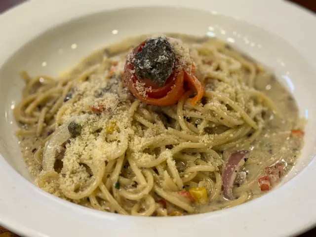 鵝肝蝦籽撈麵、炭燒豬頸肉、6oz澳洲和牛漢堡配薯條