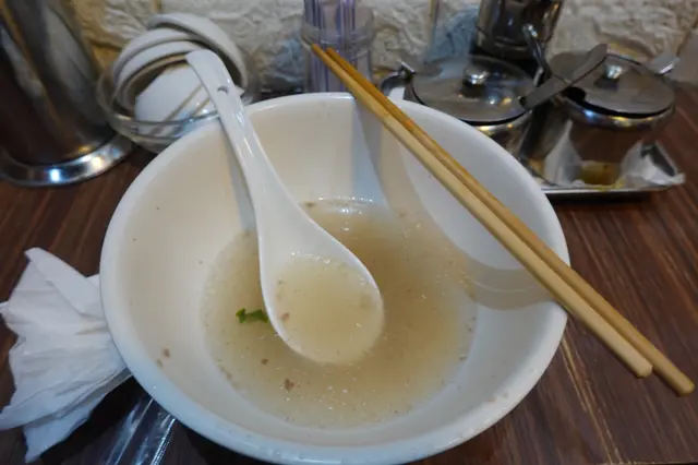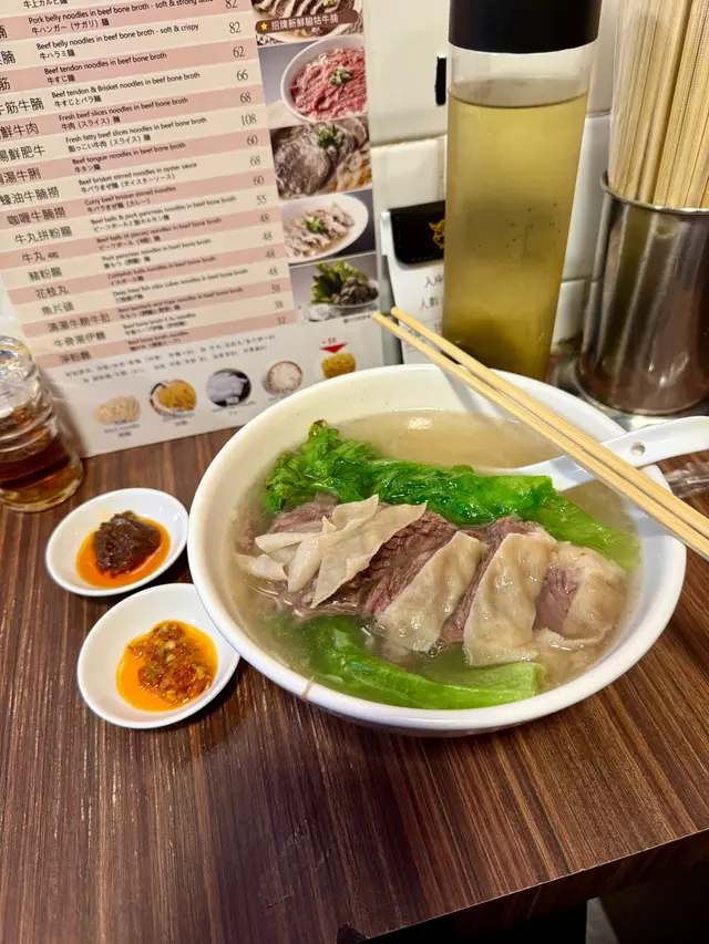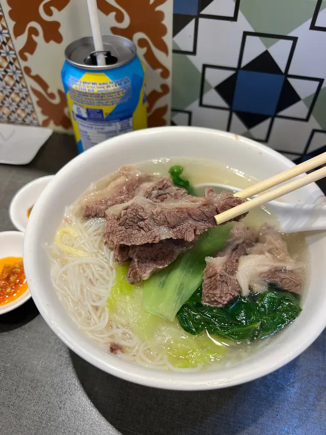 之前睇到有人介紹呢間清湯腩,覺得幾特別都想試吓,仲要講到每日買完就收舖,好似好勁咁。住附近成日夜晚經過,成日夜晚佢都冇開,估計都係一早買完收舖,一直都覺得佢好似好犀利好好食,所以都有啲期待。不過食完覺得係好食,但未至於好食到神級。偶然一個星期六下晝有機會食tea,咁啱經過見佢有開,就把握機會入去試吓。下晝四點已經冇晒崩沙坑腩爽腩,但餐牌上其他都仲有。叫咗一碗普通牛腩牛筋,一碗牛舌加牛丸。碗湯飲落去覺得有少少越南河嘅風味,幾清甜有少少香草嘅感覺,唔知係咪我幻覺。牛筋非常之淋,好膠好黏口,正,但牛腩可以再林多少少,但牛味係香嘅。清湯牛舌第一次食,其實還好,不過未好食到下次會再叫,會寧願試吓其他。牛丸都好味,好香又Juicy。不過食完啲牛再食返個湯河,碗河就好似冇乜味,我哋兩碗都係嗌河粉,河粉淋滑,但就係普通河粉冇乜好評論。另外佢有兩款醬可以自己不黎點牛或落犯碗麵度,喺唔知沙茶定沙嗲醬,同埋一款特製辣椒醬,覺得兩款都好特別又好味,但個人認為特製辣醬好似同牛肉夾啲,冇沙茶定沙嗲醬食落咁漏。建議不喺個小碟仔度,再攞啲牛肉去點。有機會再食,希望試到崩沙坑腩爽腩。坐位方面,係有啲逼,不過預咗。職員好友善。查看更多