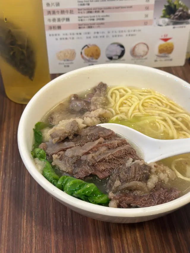 今日差唔多一點到就已經有成10個人係到排隊,等左20分鐘就可以入去。掃完QR Code落單就勁快有得食😋飲左啖湯,好清甜,最後我都飲左差唔多大半碗🤣🤣🤣我叫左崩沙腩河加牛丸$90,啲腩好淋,牛丸就好juicy🤣🤣🤣亦有叫牛腩河,朋友們都讚👍🏼不過舖頭細,所以都係快食快埋單🤣🤣查看更多