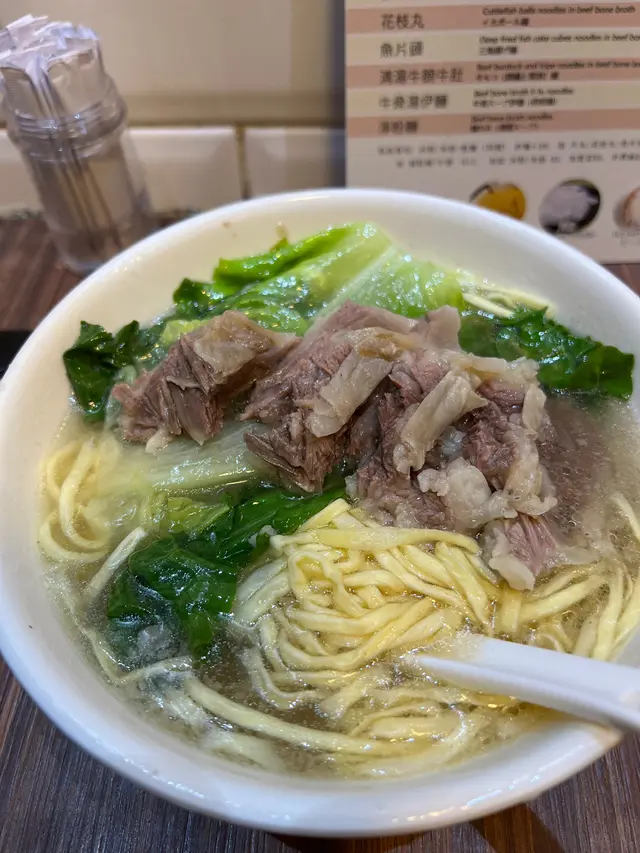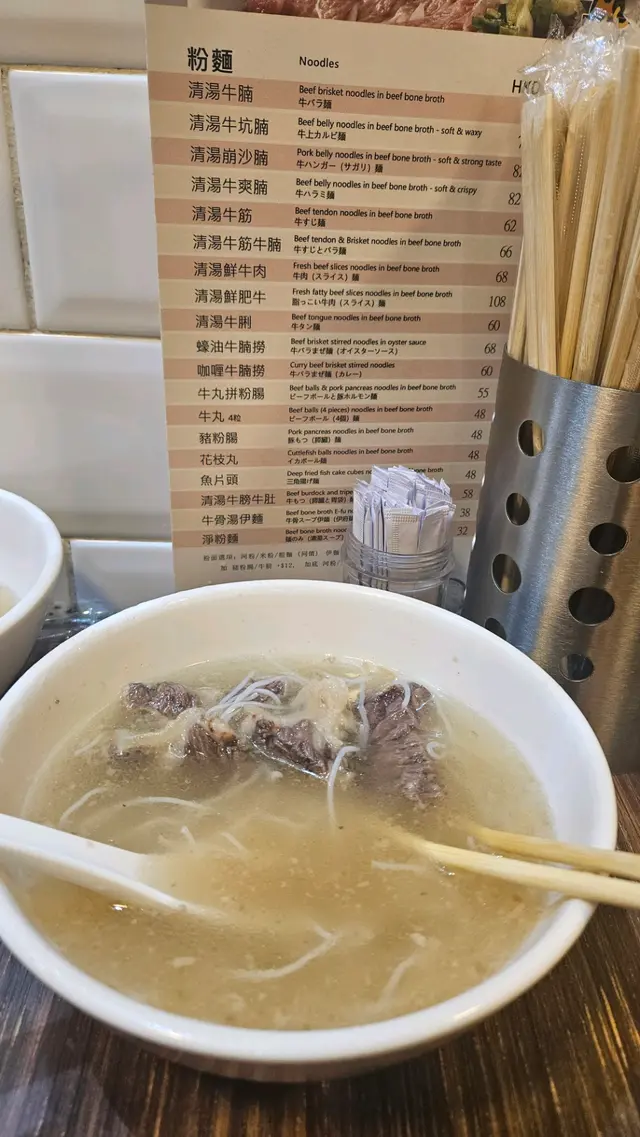 傳說話呢度嘅牛腩好味,就來試試。夜晚7:30來到,崩沙腩同牛爽腩都已經賣晒。只可以試剩低的兩款。👌🏼清湯牛坑腩 $70飲一啖湯底,係令人失望嘅。個湯係勁普通嘅味精湯底,味道單薄,味道就好似普通魚蛋河粉麵檔果種湯底咁樣。冇清湯腩湯底suppose 有嘅清甜味。雖然湯底味道不似預期,但係牛坑腩就反而有驚喜。質地地非常柔軟,夾雜着一啲肥膏,口感非常嫩滑,令人滿意。可以禰補到對湯底果種失望。清湯牛腩 $65湯底如上面所述唔合格。相對牛坑腩,牛腩就冇咁出色。質地唔柔軟,仲有d 痴牙。如果有其他更好嘅選擇唔建議呢款。總結:牛坑腩質地唔錯,但湯底唔得。查看更多